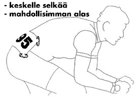 Kilpailunumerot (2 kpl) kiinnitetään taittamattomina iso oikeaan lonkkaan ja pieni oikeaan kylkeen. |